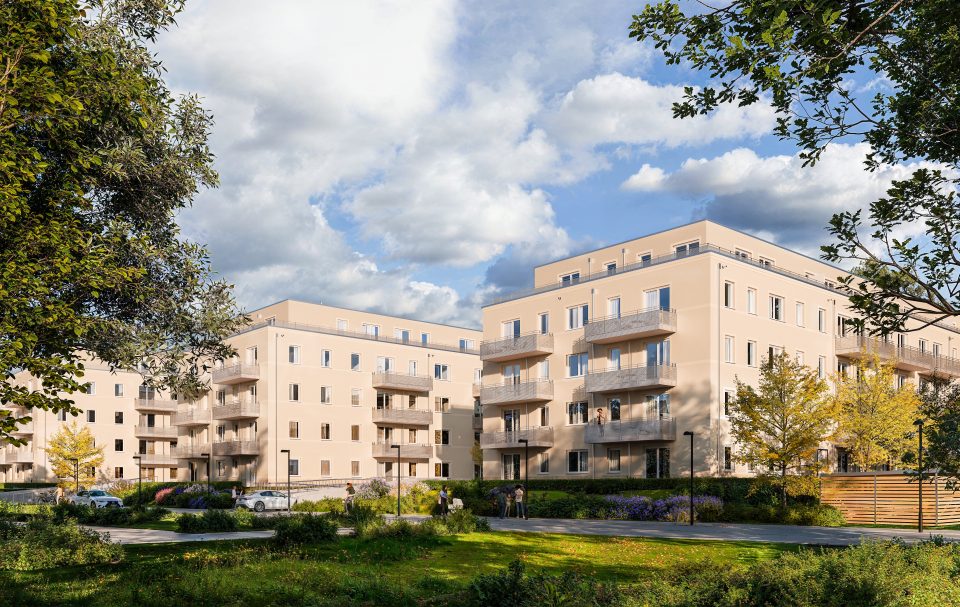 Die 278 sowohl kompakt als auch großzügig geschnittenen Wohnungen werden sich neben dem alten Baumbestand in die ruhige Umgebung einfügen. Jede Wohnung zeichnet sich durch mindestens eine Terrasse oder einen Balkon aus – auch so wird die unmittelbare Nähe zur Natur für alle Bewohner erlebbar.